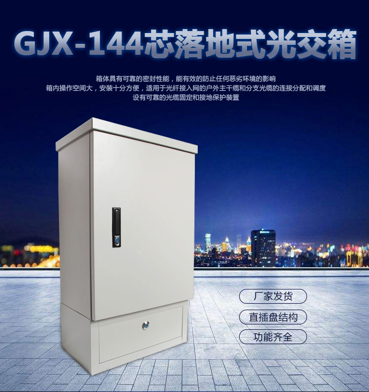 本工厂主要生产的光交箱有普通钢板的光交箱和SMC的光交箱,有壁挂式和落地式,种类齐全,可以空箱,可以含ODF一体化盘,也可以满配,只要您有需求,48芯-96芯-144芯-288芯-576芯-1152芯这种大型的光交箱我们都可以提供。